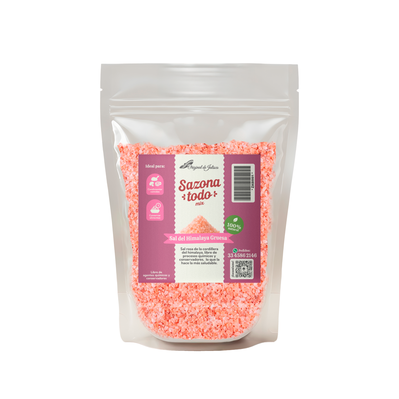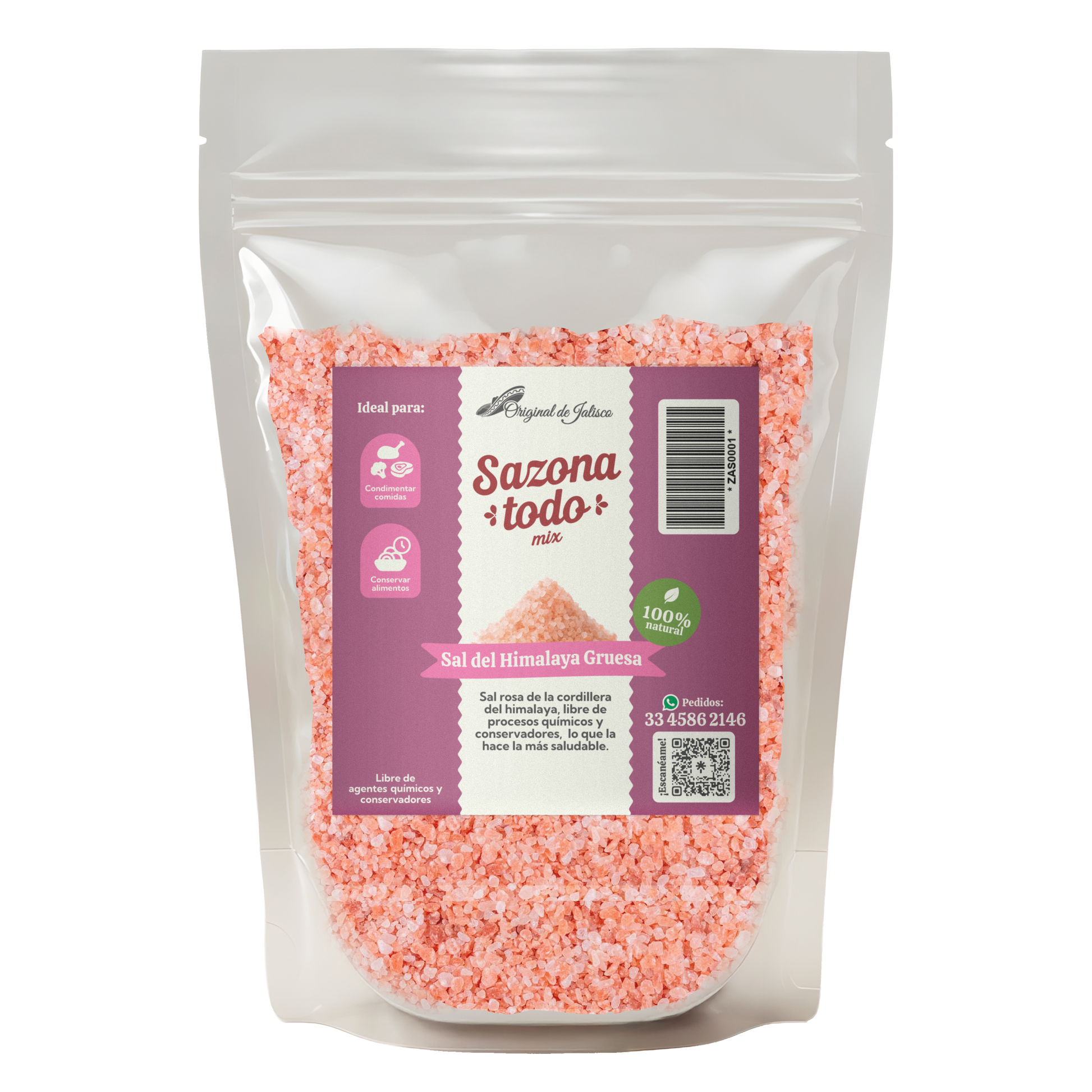 Sal rosa de la cordillera del himalaya, libre de procesos químicos y conservadores, lo que la hace la más saludable.