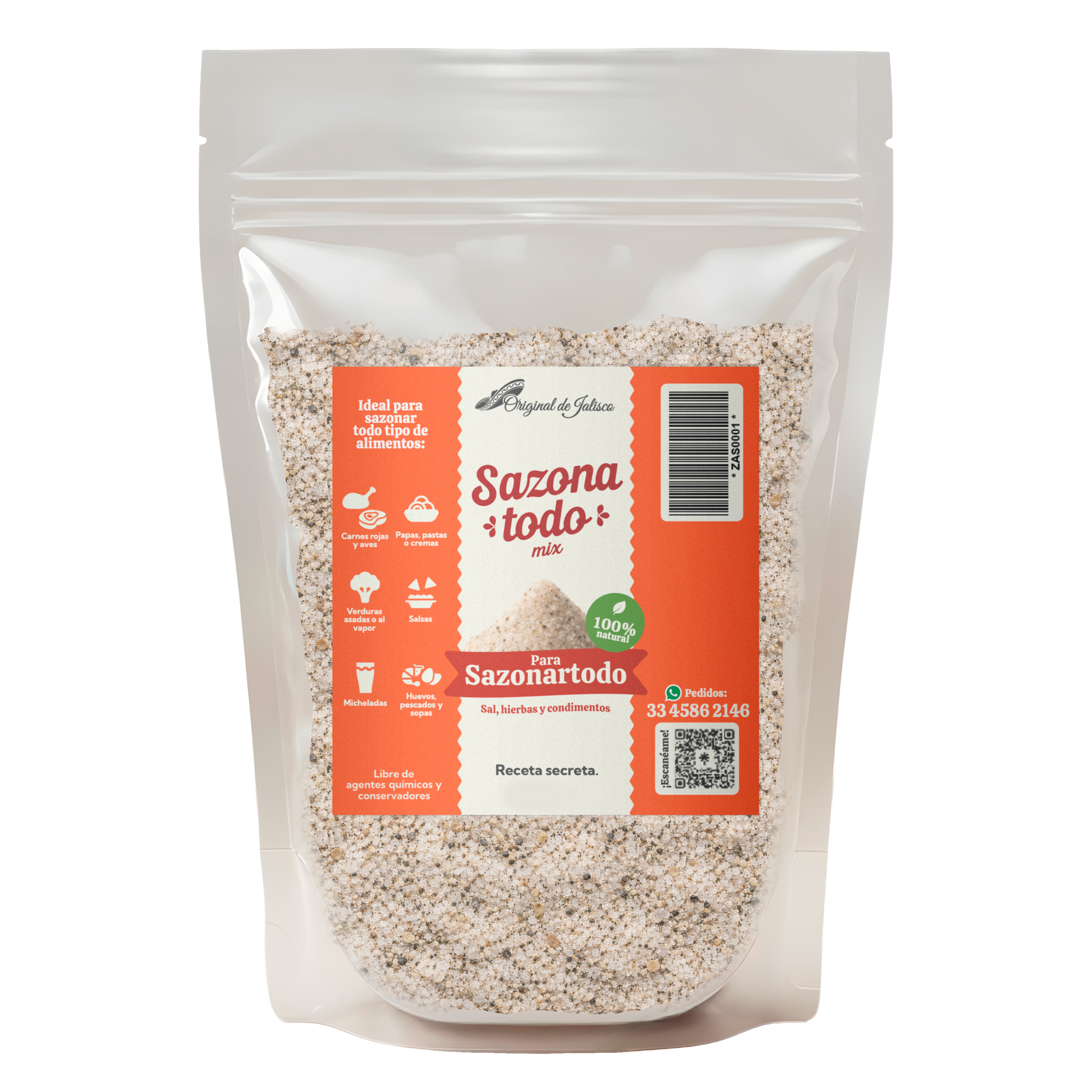 Receta Secreta de sal, hierbas y condimentos, finamente seleccionados y mezclados para sazonar cualquier platillo